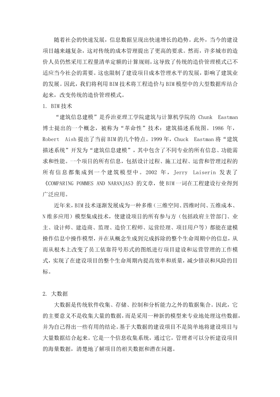 With the rapid development of our society, information data has shown a rapid growth trend. In addition, todays construction projects are becoming more and more complex, which requires higher level of traditional cost management. However, the cost personnel in many cities still adopt the calculation rule of bill quota quantities, which results in that the traditional cost management mode does not match the needs of todays society. This also limits the development of the cost management level of construction projects, and has an impact on the development of the construction industry. Therefore, we will use BIM technology to combine the project cost with the large database in BIM model, and change the traditional cost management mode.