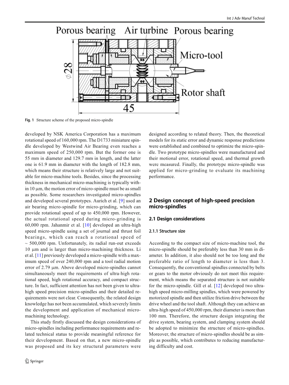 ,该热误差随着转速[13]的增加而显著增加,并对微电动主轴的最大转速产生负面影响。微气动纺锤可以减少内部气流产生的热量,从而提供紧凑的结构。然而,由于气流的可压缩性,它们在高转速下功率小,负载能力差。本研究选择了一种空气涡轮,以满足超高速和紧凑结构要求。