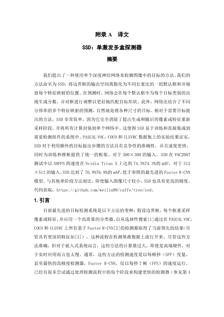 - We introduce SSD, a single-shot detector for multiple categories that is faster than the previous state-of-the-art for single shot detectors (YOLO), and significantly more accurate, in fact as accurate as slower techniques that perform explicit region proposals and pooling (including Faster R-CNN).