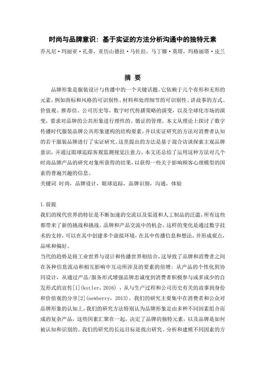 时尚与品牌意识:基于实证的方法分析沟通中的独特元素外文翻译资料