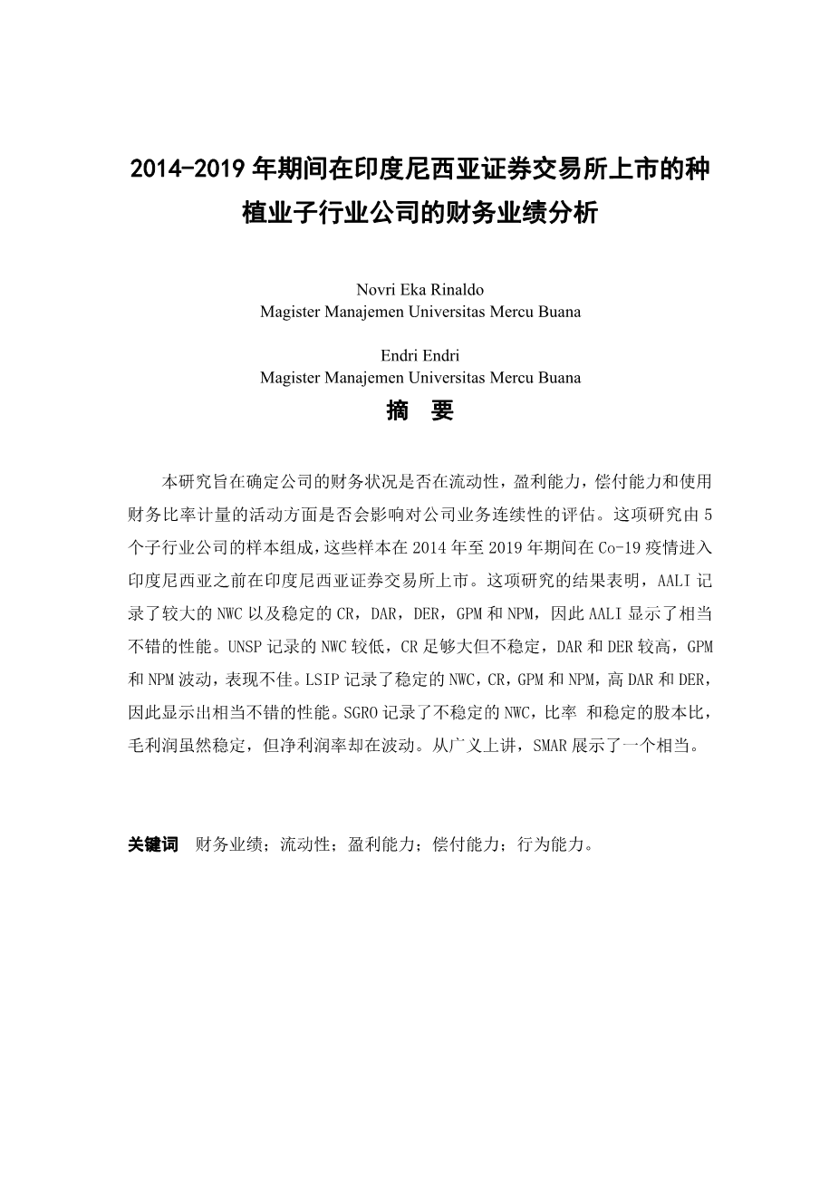 ANALYSIS OF FINANCIAL PERFORMANCE OF PLANTATION SUB-SECTOR COMPANIES LISTED ON THE INDONESIA STOCK EXCHANGE FOR THE 2014-2019 PERIOD