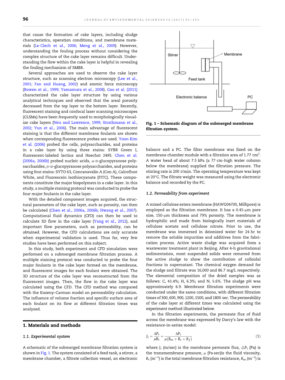 关键词:膜污染; CLSM (共聚焦扫描显微镜);滤饼层; CFD(计算流体力学);渗透性