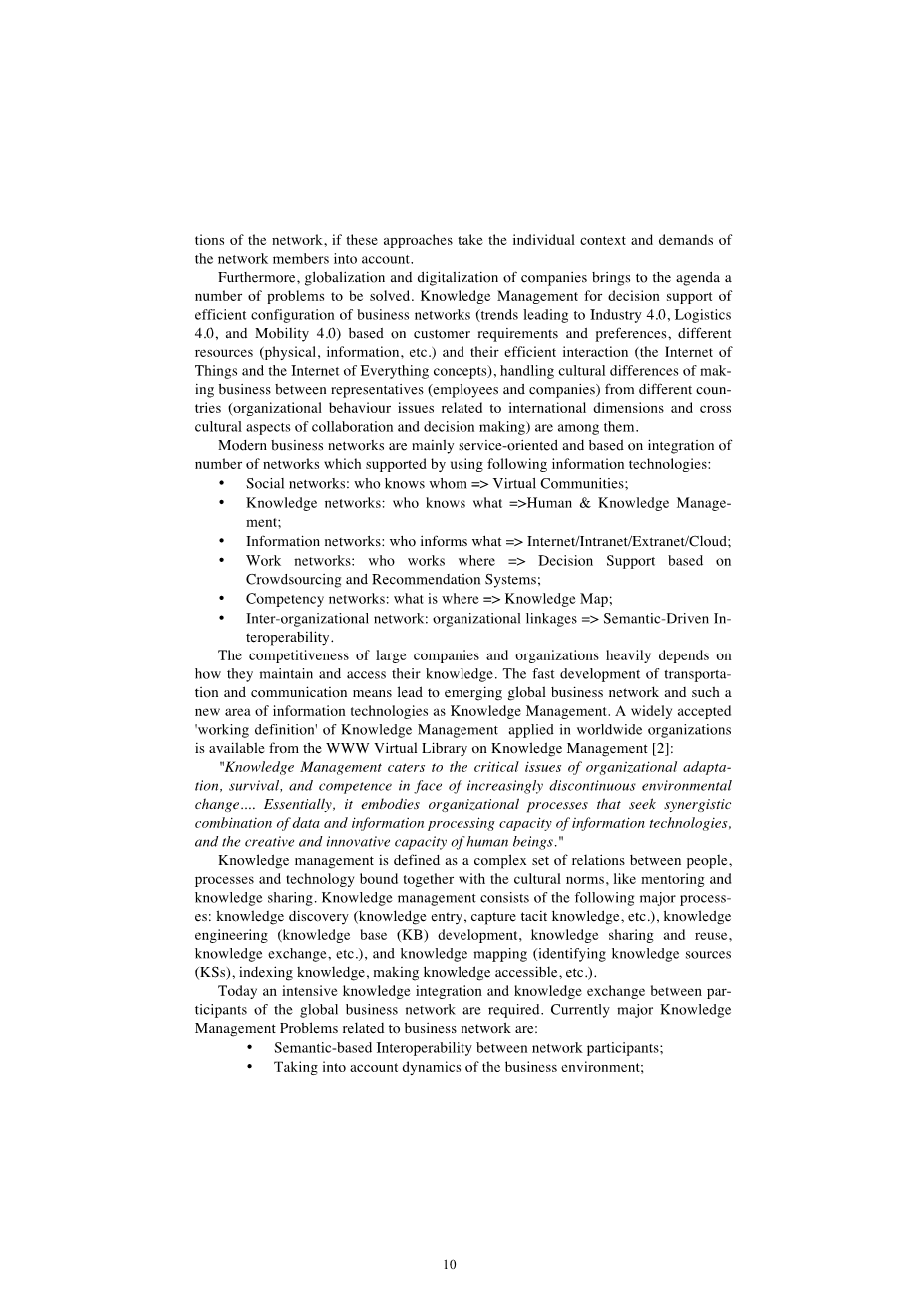 由于快速变化的商业环境、日益激烈的全球竞争和信息技术的广泛接受,在商业网络管理领域,包括第2节中的案例,对基于知识的系统提出了更高的要求。然而,在语义层面上,仍然缺乏处理知识的系统。当需要处理用不同术语、语言等存储在分布式异构源中的知识时,这对于知识共享尤其重要。