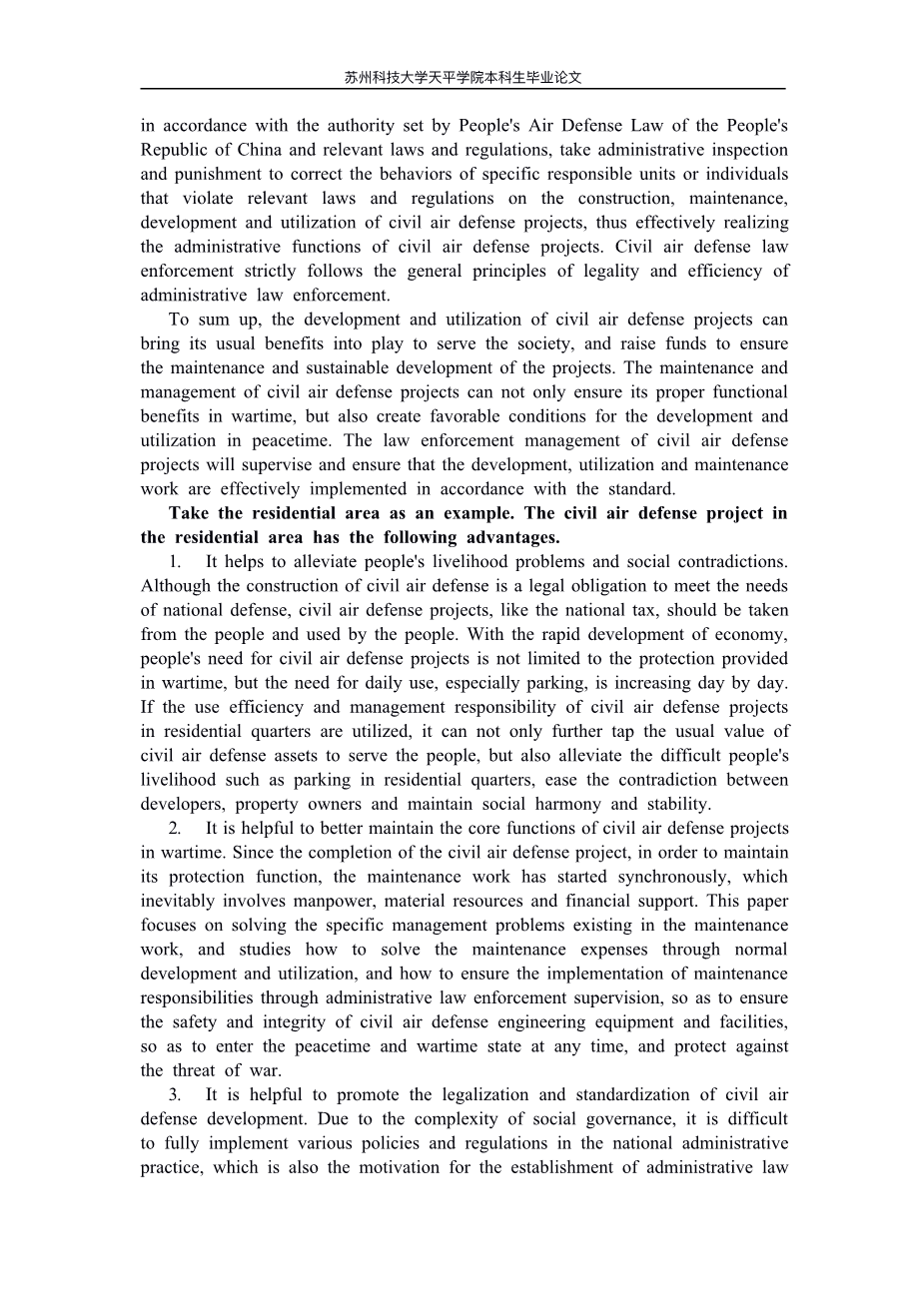 - It helps to alleviate peoples livelihood problems and social contradictions. Although the construction of civil air defense is a legal obligation to meet the needs of national defense, civil air defense projects, like the national tax, should be taken from the people and used by the people. With the rapid development of economy, peoples need for civil air defense projects is not limited to the protection provided in wartime, but the need for daily use, especially parking, is increasing day by day. If the use efficiency and management responsibility of civil air defense projects in residential quarters are utilized, it can not only further tap the usual value of civil air defense assets to serve the people, but also alleviate the difficult peoples livelihood such as parking in residential quarters, ease the contradiction between developers, property owners and maintain social harmony and stability.