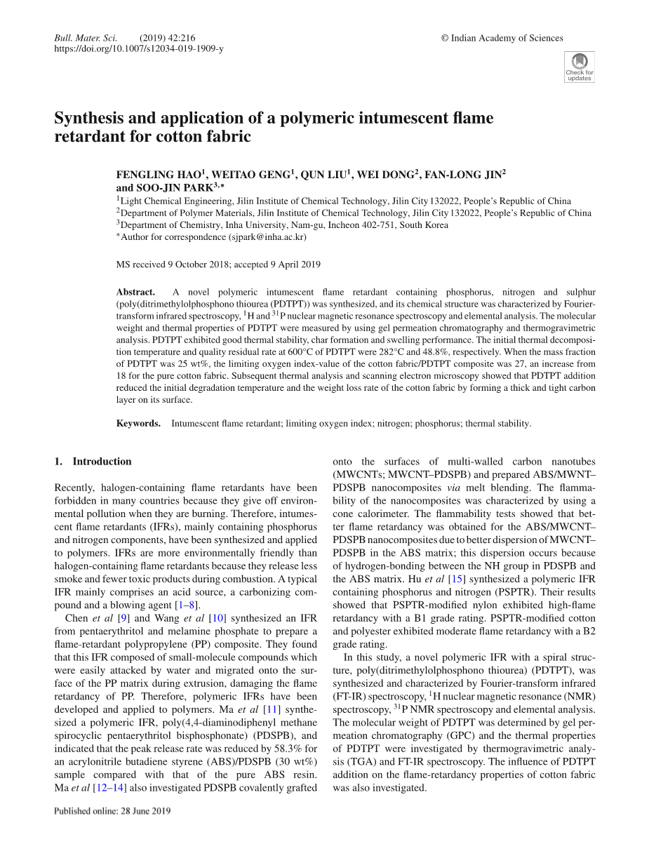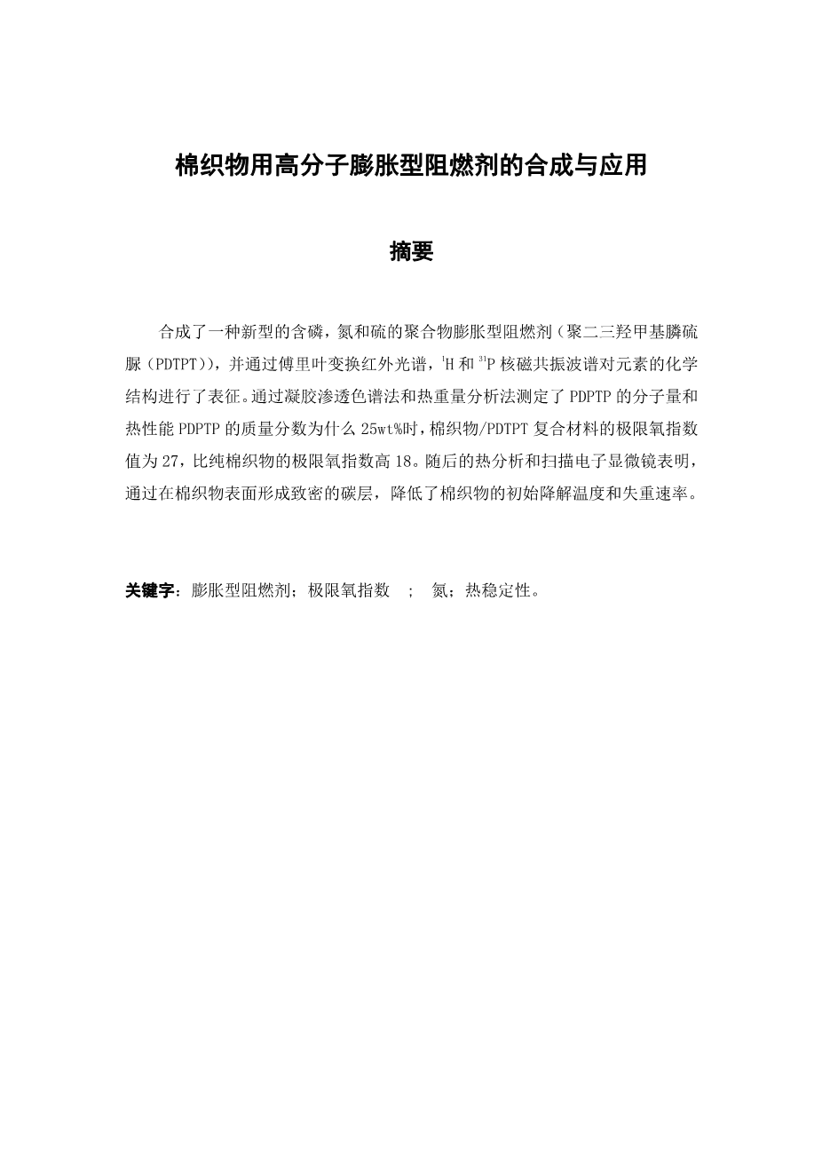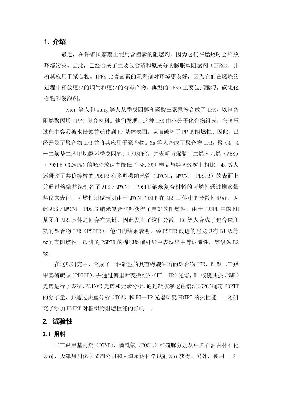 棉织物用高分子膨胀型阻燃剂的合成与应用外文翻译资料