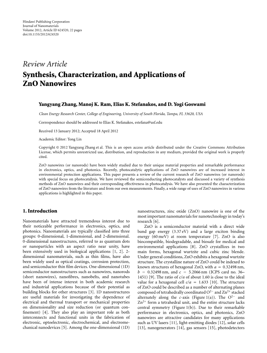 纳米材料由于其在电子,光学和光子学方面的显著性能而引起了研究者极大的兴趣。纳米材料通常分为三组:零维,一维和二维。零维纳米结构,称为量子点或具有接近1的纵横比的纳米颗粒,已广泛用于生物学[1,2]。二维纳米材料,例如薄膜,也已广泛用作光学涂层,腐蚀保护和半导体薄膜器件。一维(1D)半导体纳米结构如纳米线,纳米棒(短纳米线),纳米纤维,纳米带和纳米管因其作为其他结构的构建块的潜力而在学术研究和工业应用中引起了研究界极大的兴趣[3]。一维纳米结构是用于研究电和热传输或机械性质对维数和尺寸减小(或量子限制)的依赖性的有用材料[4]。它们在电子,光电,电化学和机电纳米器件的制造中也起到互连和功能单元的重要作用[5]。在一维(1D)纳米结构中,氧化锌(ZnO)纳米线是当今纳米技术中最重要的纳米材料之一[6]。