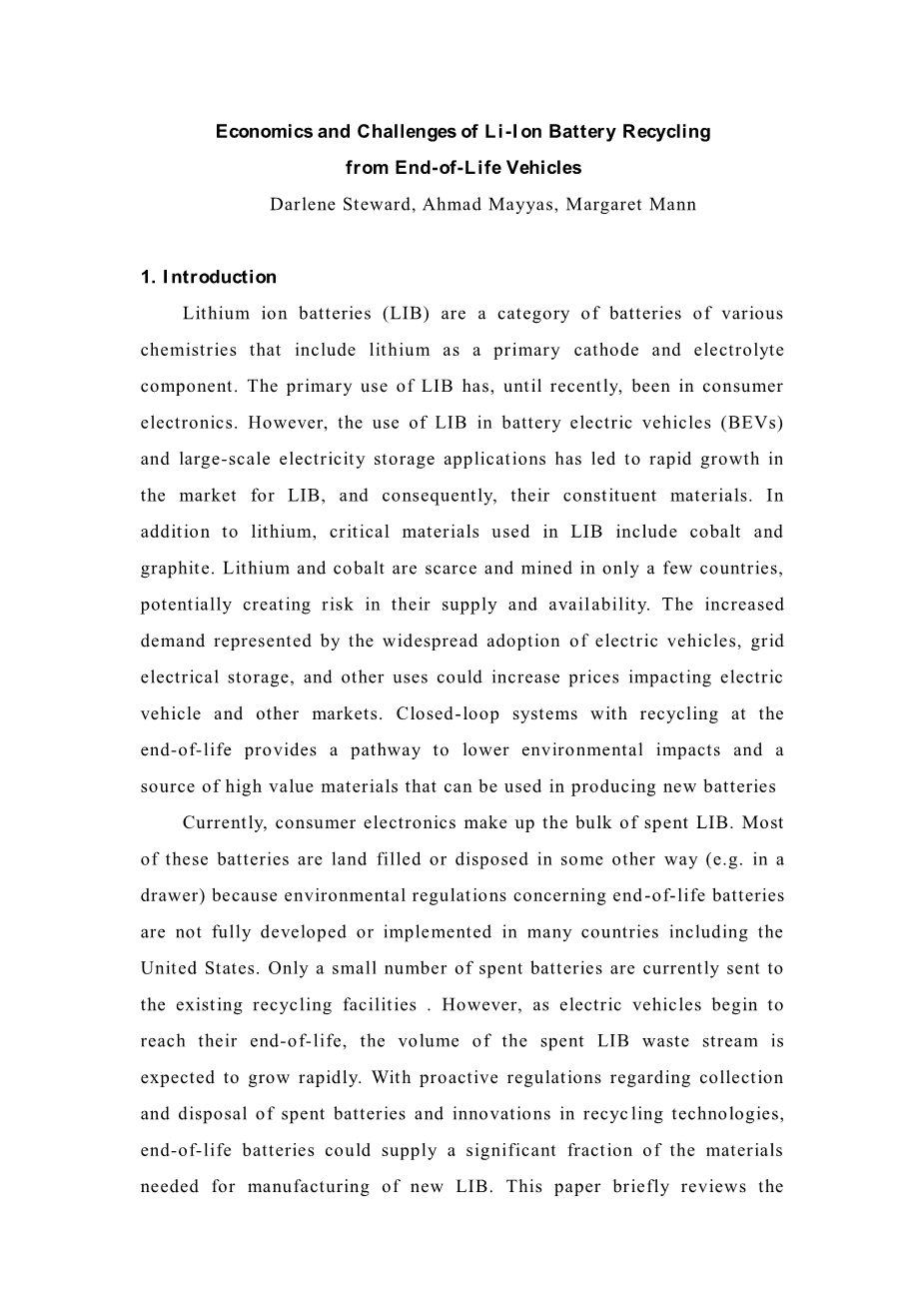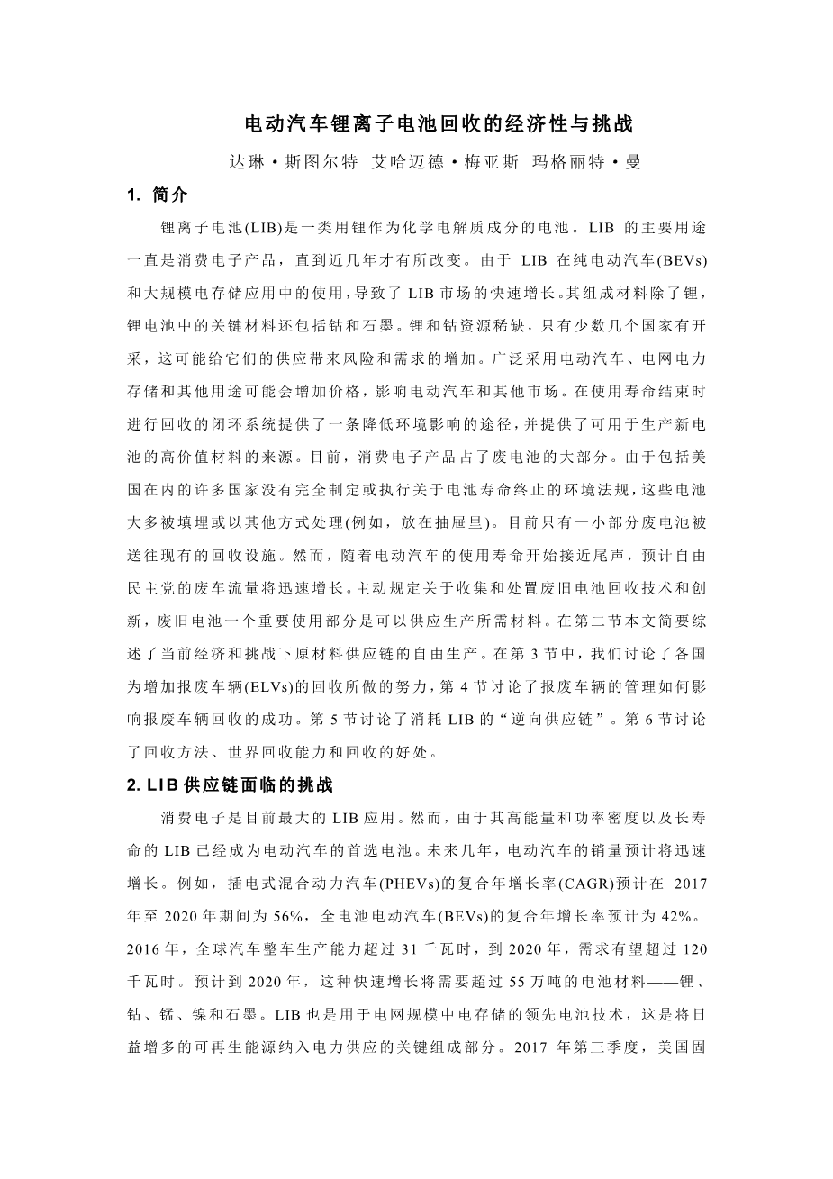 电动汽车锂离子电池回收的经济性与挑战外文翻译资料