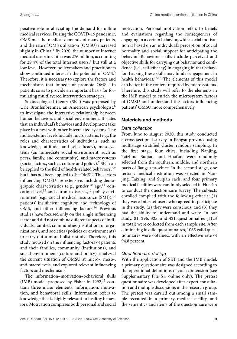 在线医疗服务(OMS)描述了使用电信技术提供远程医疗服务的信息系统[1]。它已成为从医疗服务提供者那里获得医疗服务的一种方法[2]。重大流行病和其他公共卫生紧急情况通常会导致对医疗服务的需求激增[3]这增加了交叉感染的机会,并使医院处于高负荷运作状态。OMS具有跨时间、跨空间、方便性的优点,因此可以在减轻线下医疗服务需求方面发挥积极作用。在COVID-19大流行期间,OMS满足了许多患者的医疗需求,我国OMS使用率(OMSU)略有上升。4到2020年,中国网民用户数量为2.76亿,占网民用户总数的29.4%,4,但仍处于较低水平。然而,决策者和从业者对OMS的潜力表现出持续的兴趣[5]。因此,有必要探讨阻碍或促进患者OMSU的因素和机制,为制定多层次干预策略提供重要依据。