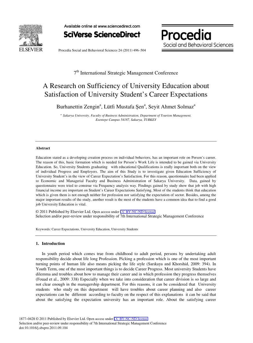 这项研究的目的是确定学生在多大程度上认为教育足以满足他们的职业期望。为此,在萨卡里亚大学经济与工商管理学院和管理学院学习的学生中进行了实地考察。研究宇宙既包含教职工学生。该研究的主要群体来自管理学、经济学、旅游管理学、公共管理学、金融学、国际关系学、人力资源管理学、工作经济学、产业关系学等学科的5804名学生。但其中的2000人为远程教育学生。首先被认为是通过邮寄方式应用问卷,由于时间有限这一思想被取消并以3.800份正规教育学生的问卷进行。