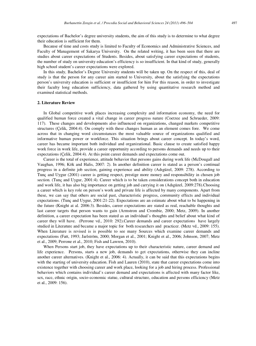 为此,可以认为,在本系学习的大学生会对职业生涯规划产生困扰,而且职业期望也可以根据教职员工的不同而有所差异,在这方面的解释可以说,对于满足期望的大学有着重要的作用。关于学士学位大学生满意的职业期望,本研究的目的是确定他们的教育对他们来说在多大程度上是足够的。由于时间和费用的限制,研究仅限于经济和行政学系和萨卡里亚大学管理学院。在相关的写作中,已经看到有关于学生职业期望的研究。此外,在满足学生职业期望方面,关于大学教育效率的研究数量不足。在这种研究中,一般对高中生的职业期望进行了探究。