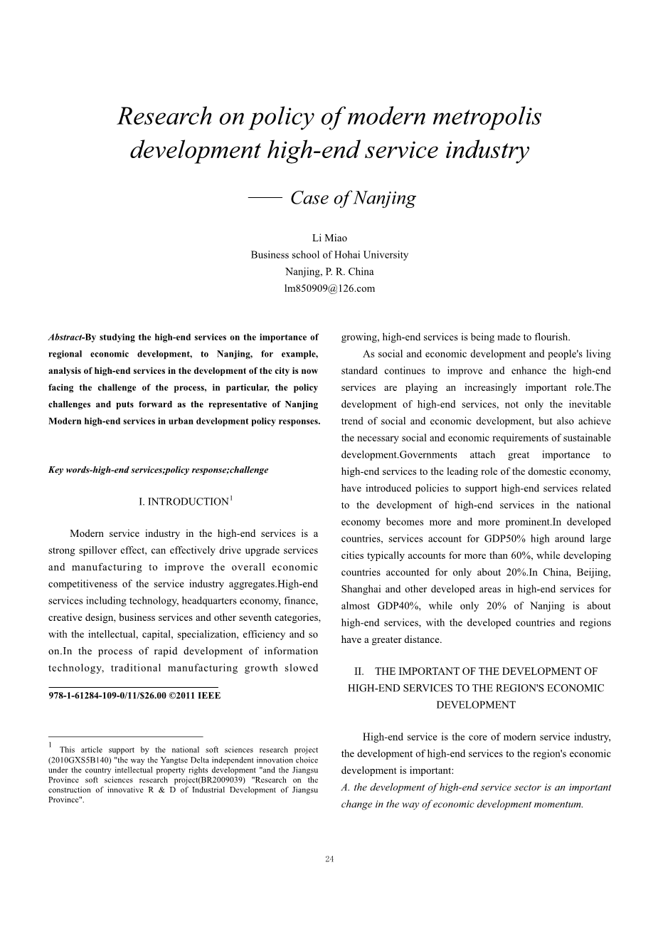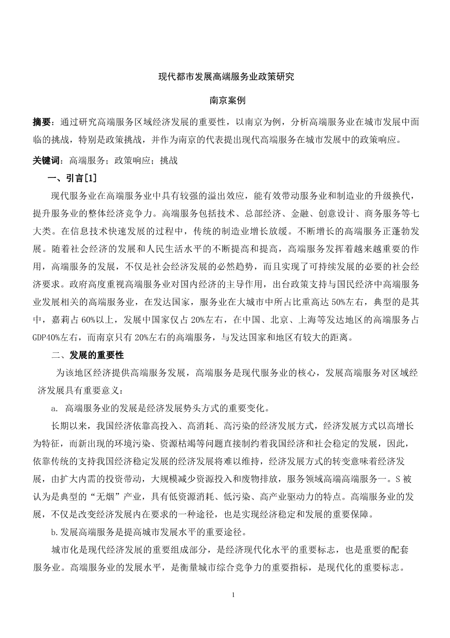 现代都市发展高端服务业政策研究:南京案例外文翻译资料