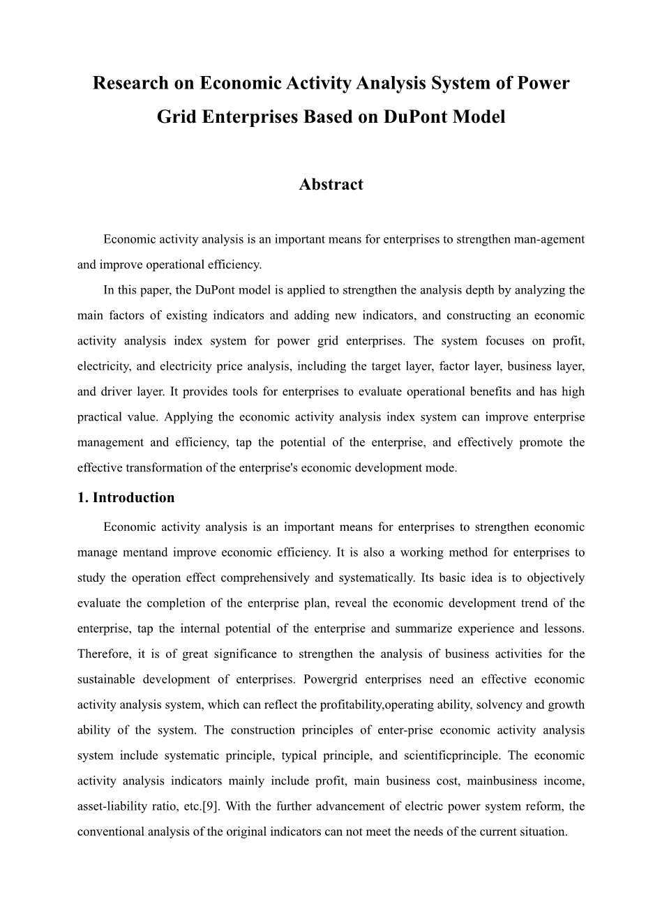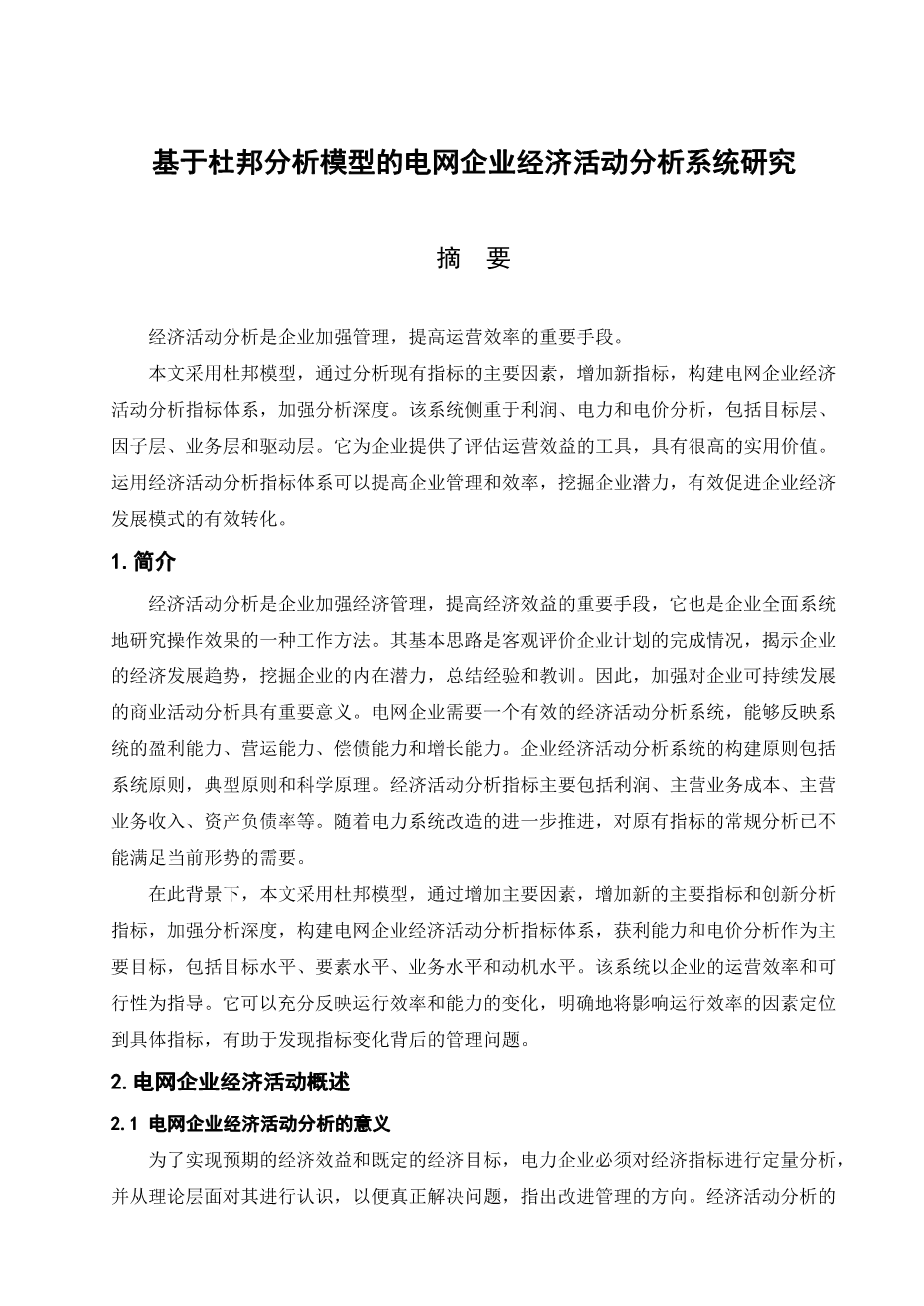 基于杜邦分析模型的电网企业经济活动分析系统研究外文翻译资料