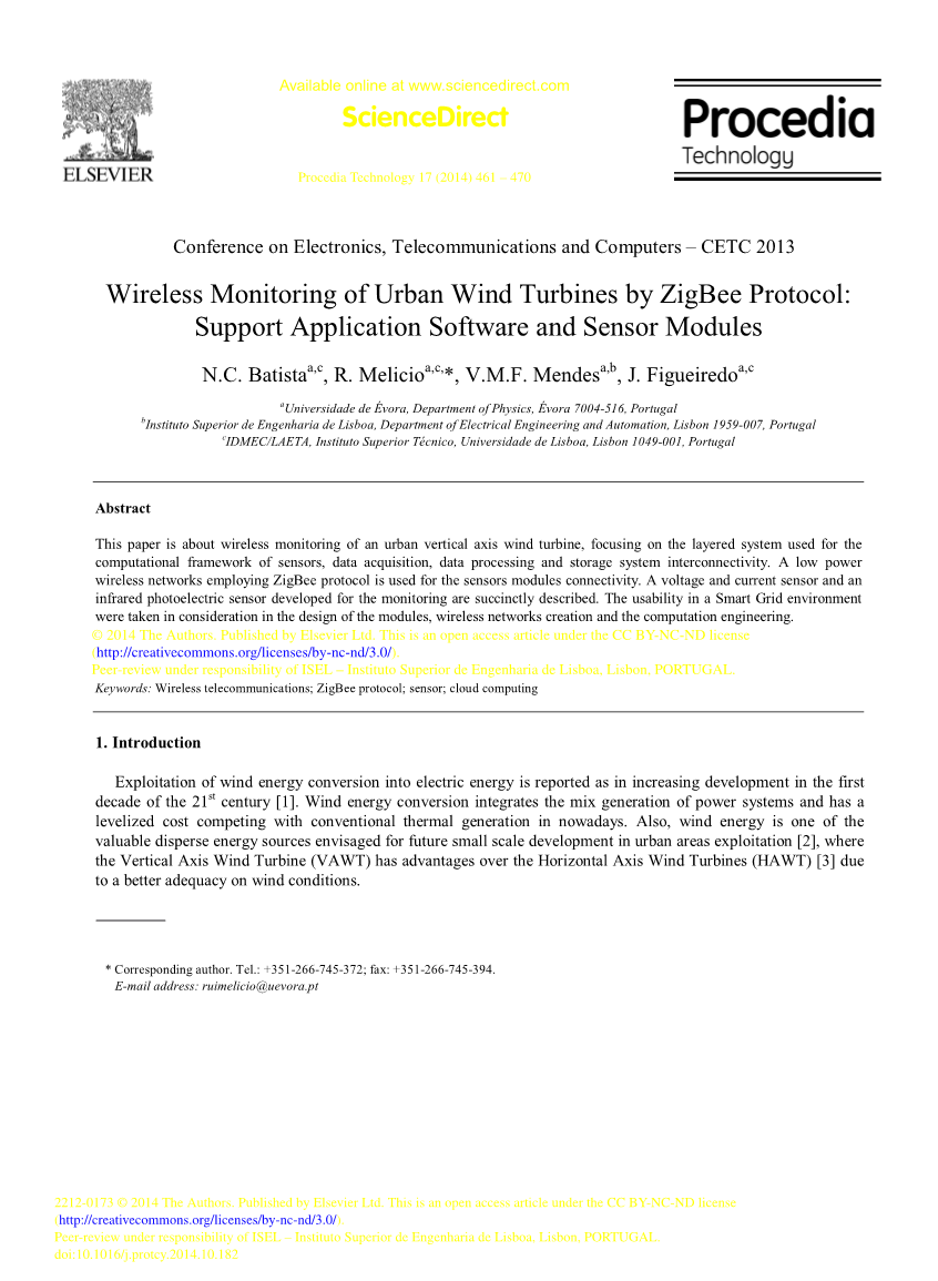 copy; 2014 The Authors. Published by Elsevier Ltd. This is an open access article under the CC BY-NC-ND license (http://creativecommons.org/licenses/by-nc-nd/3.0/). Peer-review under responsibility of ISEL – Instituto Superior de Engenharia de Lisboa, Lisbon, PORTUGAL.