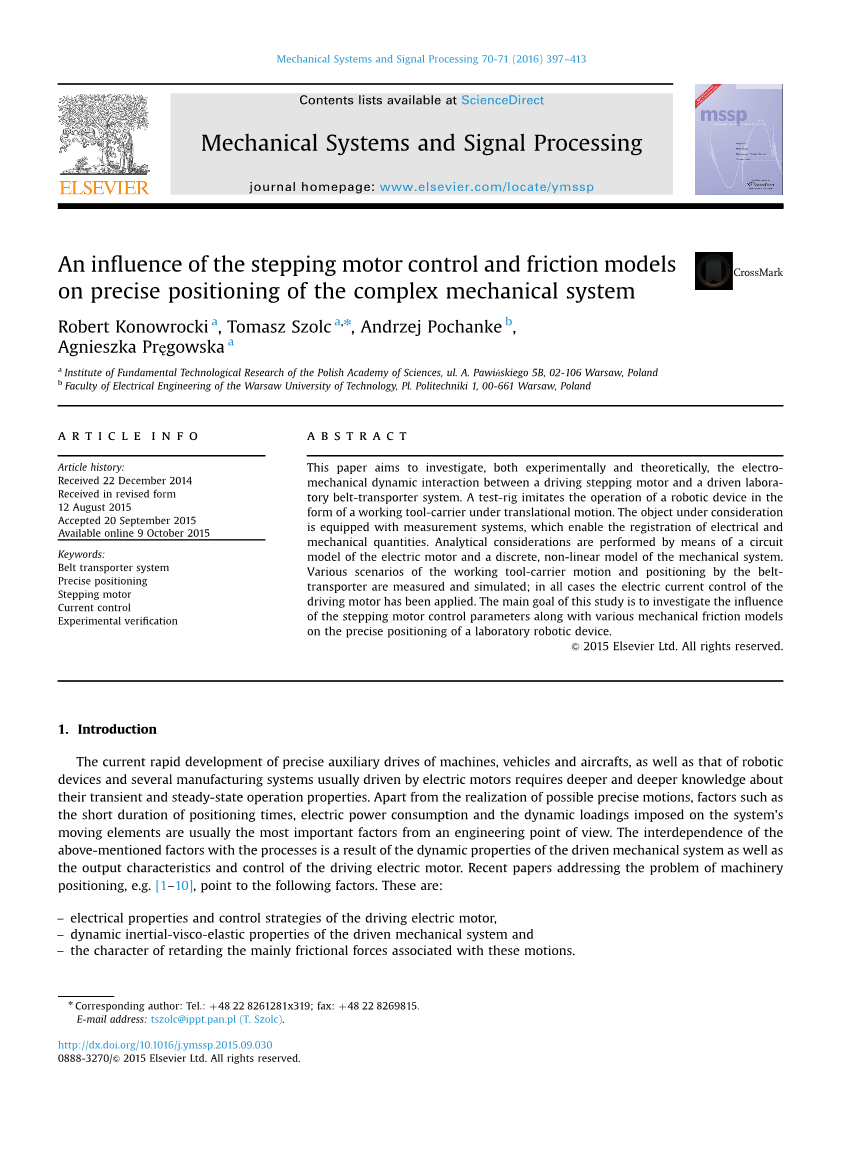 - 步进电机控制和摩擦模型对复杂机械系统精确定位的影响外文翻译资料